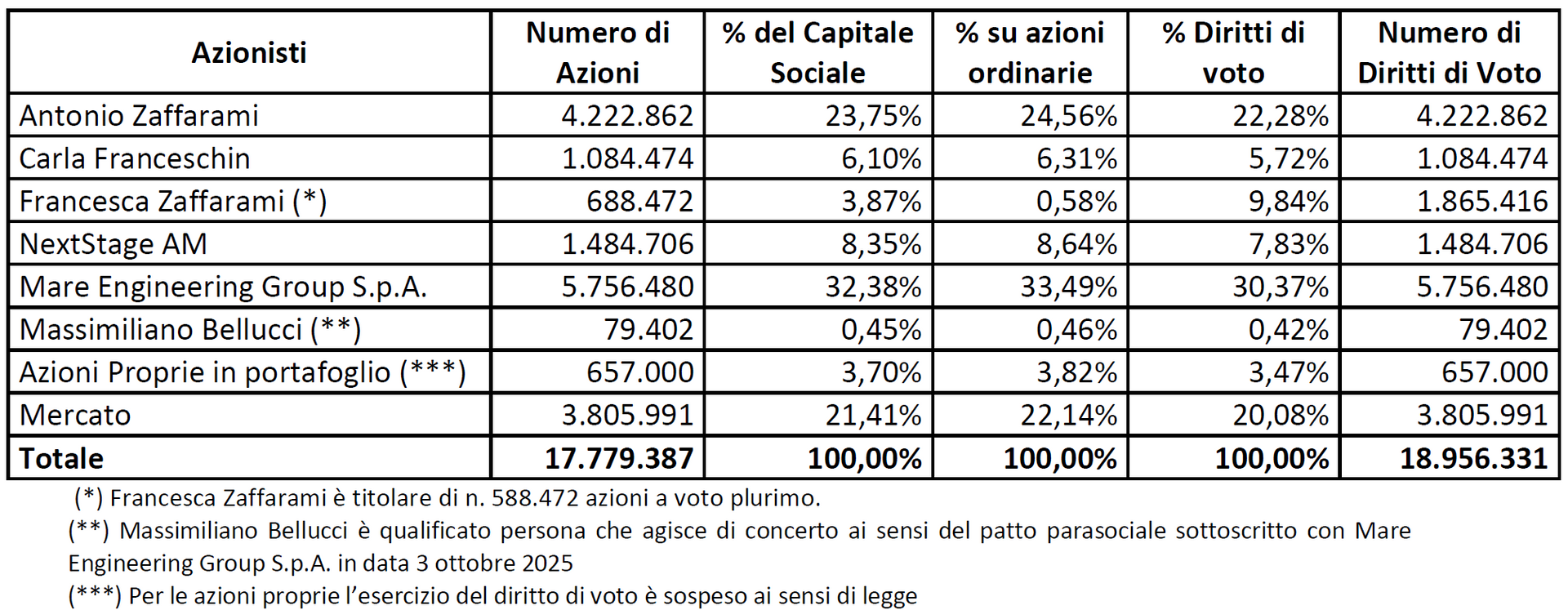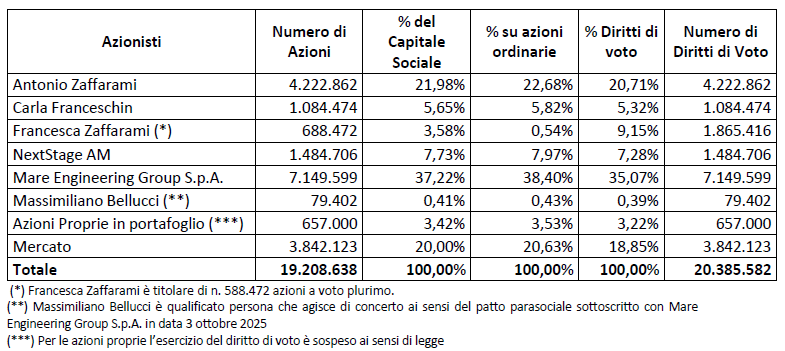 Il capitale sociale sottoscritto e versato è pari ad Euro 7.311.193,50 suddiviso in n. 17.779.387 azioni ammesse alle negoziazioni su Euronext Growth Milan, senza indicazione del valore nominale, di cui n. 17.190.915 azioni ordinarie (ISIN IT0005373417) e n. 588.472 azioni a voto plurimo (IT0005377467.00).